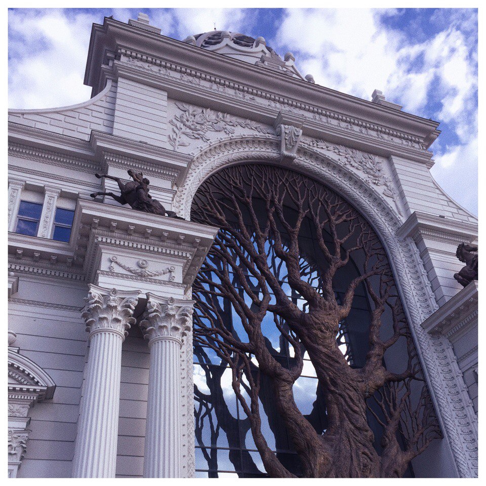 из всей той прогулки на меня произвел больше всего впечатления дворец земледельцев. это настолько красивое и идеально пропорциональное здание, очень необыкновенное. около него мы провели наверно больше всего времени, знаете, бывает такое, когда просто нравится сидеть и наслаждаться видом. а поверьте, это было красиво - снежно белые колонны на фоне ослепительно голубого неба... мы бы еще сидели, впитывая счастье, но нас подхватил Алекс и мы сбежали на местный Арбат.